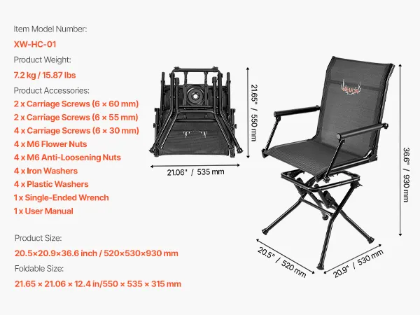 Foldable and Easy to Carry: Our hunting chair folds down to a compact 21.7 x 21.1 x 12.4 in/550 x 535 x 315 mm. Equipped with adjustable shoulder straps, it’s easy to carry and ideal for transport across outdoor environments