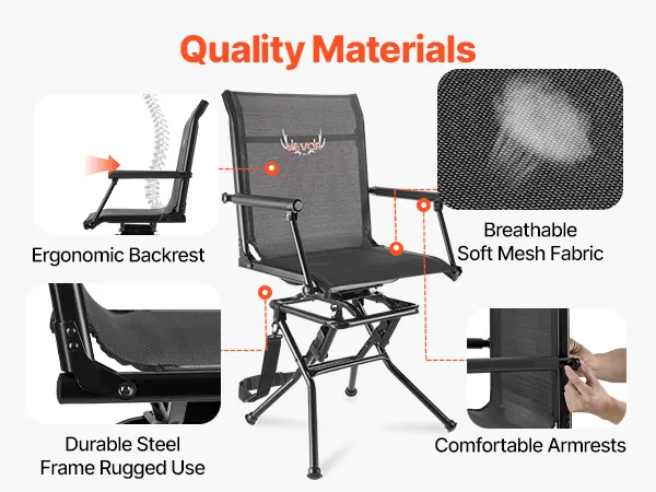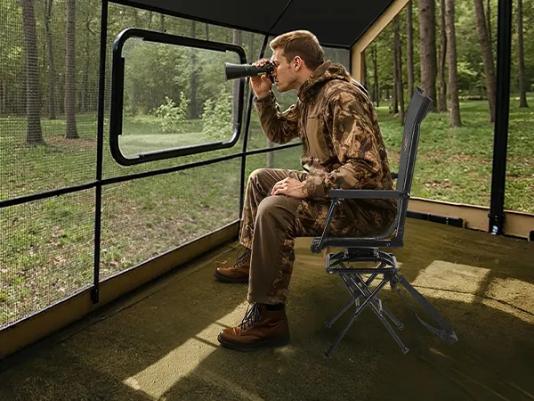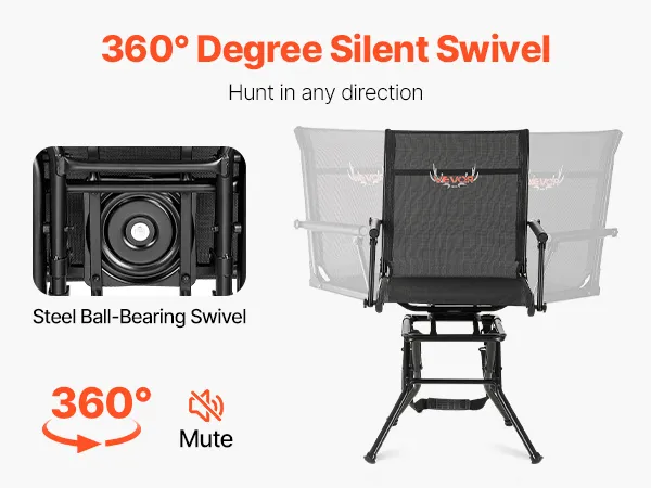 360° Silent Swivel Design: This hunting chair features an upgraded silent base that reduces noise and wobble. It smoothly rotates in any direction, allowing you to turn quickly and quietly when game enters range, ensuring a cozy hunting experience