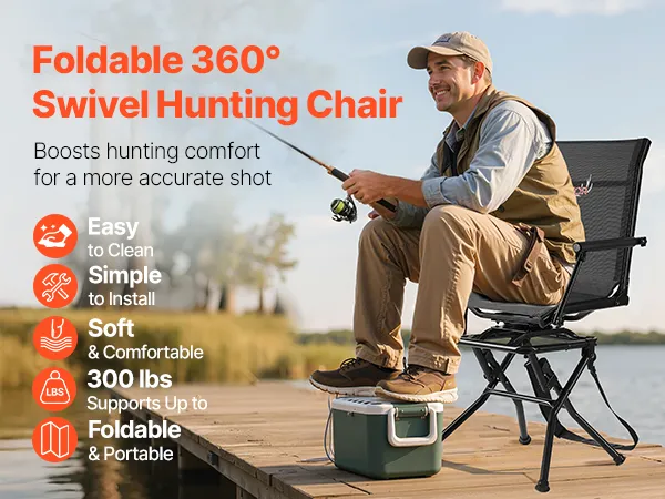 Designed with the serious hunter in mind, this premium hunting chair features 360° silent swivel mechanism, letting you pivot smoothly and silently. Just instantly get ready to lock onto and shoot your target from any direction! Ideal for deer hunting, camping, fishing or other outdoor activities.