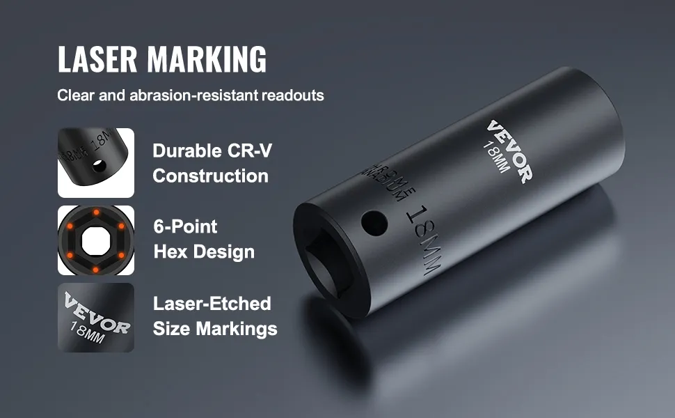 Identifying socket sizes is easy. Each socket has a clear imprint. The numbers are big and easy to read. No more guessing and errors. It saves you time during work. This imprint stays visible even after frequent use. You don't have to strain your eyes anymore. This clear imprint is extremely useful, especially in low-light conditions. You get the job done faster. It makes identification at merely a glance. The perfect size differentiation makes your work efficient. The convenience is right in your toolbox.