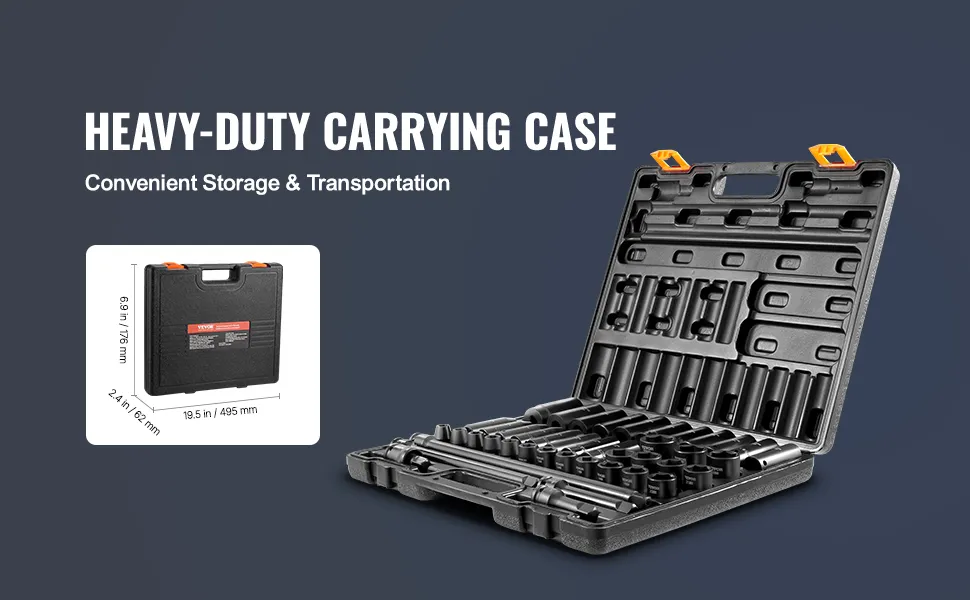 The set comes with a strong carrying case, keeping your tools organized is easy. Each socket fits in its designated spot. The case is sturdy and durable. It is built to last. It protects your tools from damage. It is easy to transport. You can take it wherever you need, whether onsite or at home. This case makes it portable. It is a well-arranged tool, ready for use. No more lost or mixed-up sockets. It offers efficient storage for busy professionals. You should always have the right tool on hand.