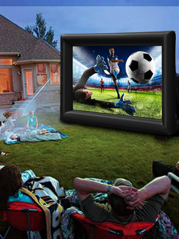 Our movie screen is designed to help you get more fun at home parties and outdoor BBQ. Self-blow quickly within one minute when plugged in. It can create a full-size widescreen that displays favorite movies, TV shows, videos, or playing games. A happy atmosphere can be made, while friends, kids, colleagues, or neighbors will have a good time.