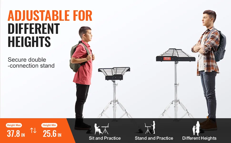 It is the complete set of glockenspiel sets that provides everything you need for home practice. This glockenspielset includes mallets, drumsticks, a music stand, an 8-inch practice pad, and an adjustable stand. The adjustable stands ensure the instrument can be set at the right height to suit different users. These players make it versatile and suitable for both kids and adults alike. With mallets and drumsticks included, you have the tools to play the instruments effectively. The practice pad allows for additional percussion practice. This set is perfect for students who want to practice at home and improve their skills.
