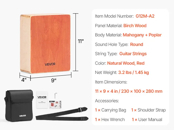 VEVOR Cajon Box Drum, with Internal Guitar Strings, Lightweight Wooden Percussion Box, Portable Birch Wood Drum Instrument with Travel Bag, Adjustable Strap, for Beginner & Professional, 11 x 9 x 4 in VEVOR Cajon Box Drum, with Internal Guitar Strings, Lightweight Wooden Percussion Box, Portable Birch Wood Drum Instrument with Travel Bag, Adjustable Strap, for Beginner & Professional, 11 x 9 x 4 in