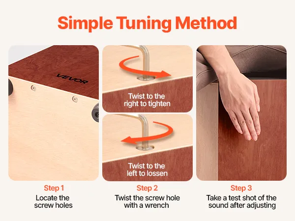 Your Sound, Your Control: You can adjust the internal strings from the bottom of the portable box drum using the included hex wrench. Turn counterclockwise to loosen, clockwise to tighten, and change the tone