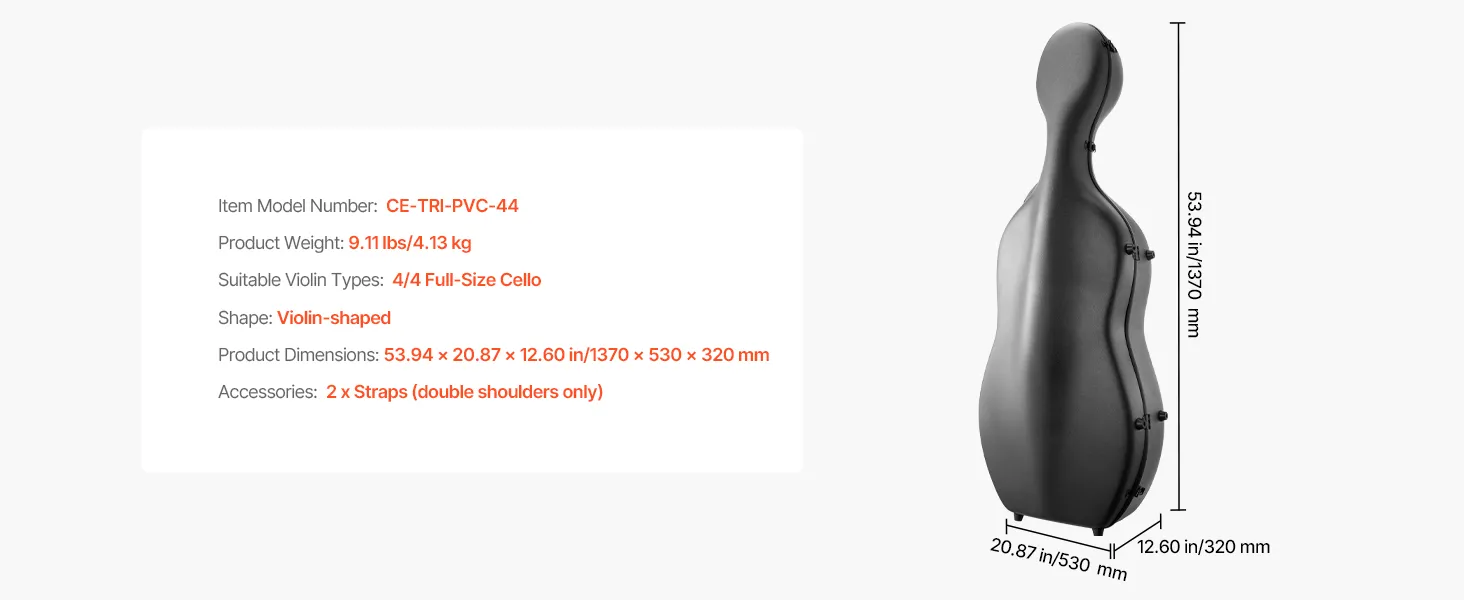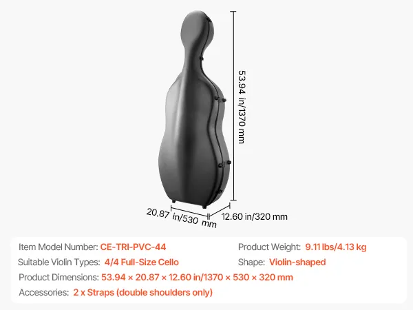 Lightweight and Portable: Weighing only 9.7 lbs/4.4 kg, thiscello case is easy for anyone to carry. With multiple carrying options, it can be worn as a backpack or over the shoulder, reducing strain and keeping your cello secure during transport