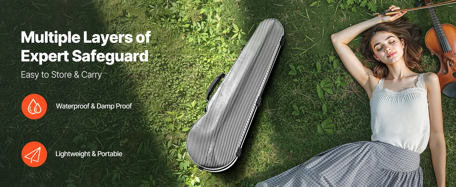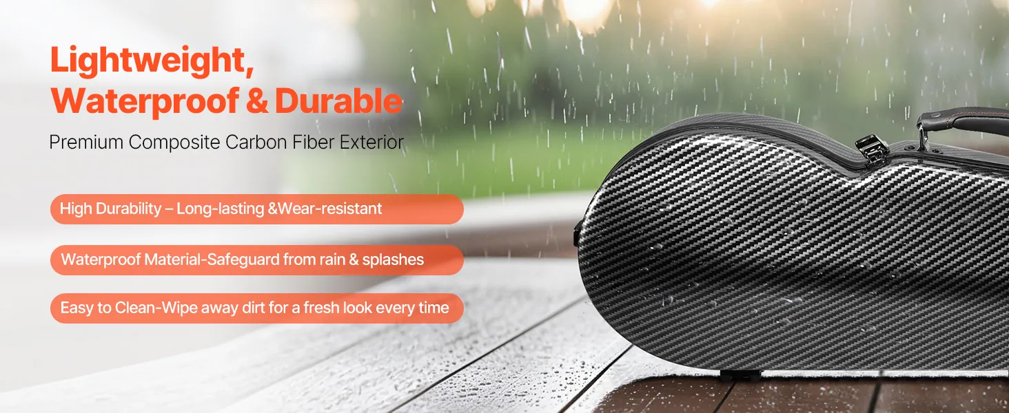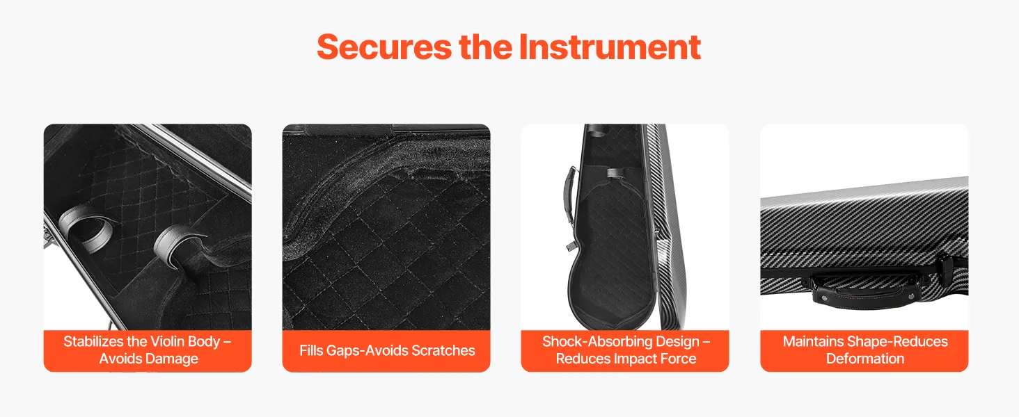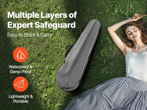 • Comprehensive Shielding Design: The violin case features a premium composite carbon fiber shell with strong pressure resistance. Inside, soft EVA foam absorbs impact, while a plush lining helps reduce scratches during movement