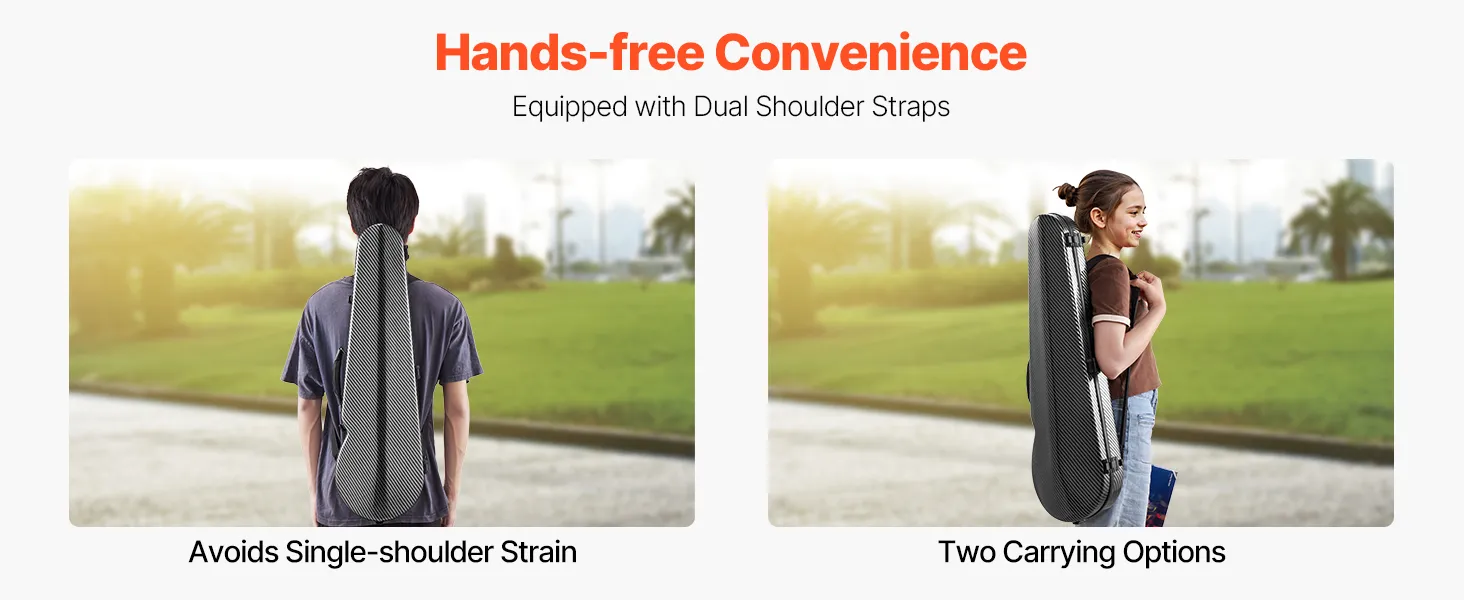 The violin case’s double-shoulder strap design effectively helps alleviate shoulder pain and strain caused by carrying on one side. Even during long walks or standing for extended periods, you can carry your violin comfortably without feeling fatigued.