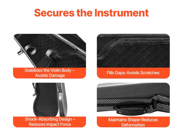 • Stable Violin Placement: Inside the 4/4 violin case, a built-in neck holder keeps the violin centered and suspended during transport, helping to avoid collisions and damage