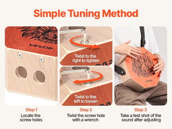• Your Sound, Your Control: You can adjust the internal strings from the bottom of the portable box drum using the included hex wrench. Turn counterclockwise to loosen, clockwise to tighten, and change the tone