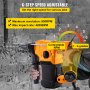 • Variable Speed: Our rotary hammer can reach 850 r/min no-load speed and 4200bpm max impact frequency. Various applications can be completed by adjusting the 6 levels no-load speed variable trigger.