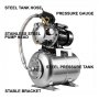 【STAINLESS STEEL SHALLOW WELL PUMP】- The shallow well jet pump consists of a stainless steel pump head, a 5.3-gallon steel tank hose, and a steel pressure tank with pressure gauge. It is made of stainless steel, corrosion-resistant and rustproof.