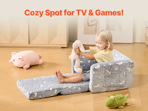 Multifunctional Kids Sofa: This foldable kids sofa easily transforms into a cozy nap bed, creating a dedicated play and rest space just for your little one. Whether they're reading, watching shows, snacking, gaming, lounging, or napping, this portable sofa brings both comfort and fun