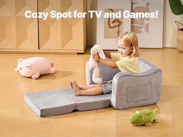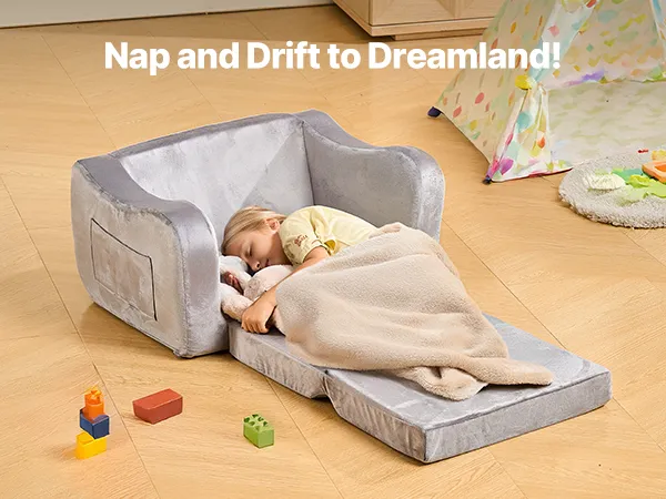 Multifunctional Kids Sofa: This foldable kids sofa easily transforms into a cozy nap bed, creating a dedicated play and rest space just for your little one. Whether they're reading, watching shows, snacking, gaming, lounging, or napping, this portable sofa brings both comfort and fun