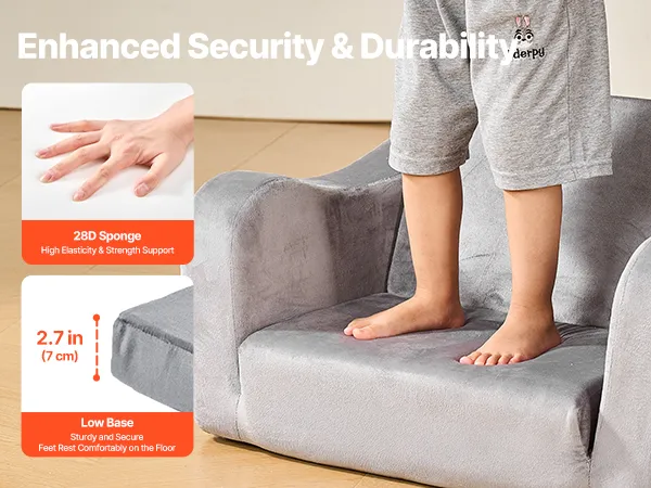 Soft & Skin-Friendly Comfort: Filled with high-density 28D foam, this toddler couch provides lasting comfort and reliable support, maintaining its shape even after extended use. The outer cover is made of premium short plush fabric that feels gentle and cozy against children's skin
