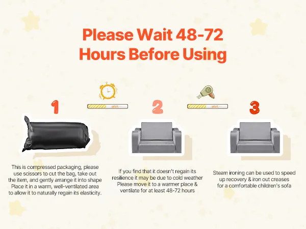 Warm Tip: Our kids sofa comes vacuum-packed for easy shipping. Due to compression, the inner foam may take over 48 hours to fully expand and regain its original shape after unpacking. We appreciate your patience—it’s worth the wait