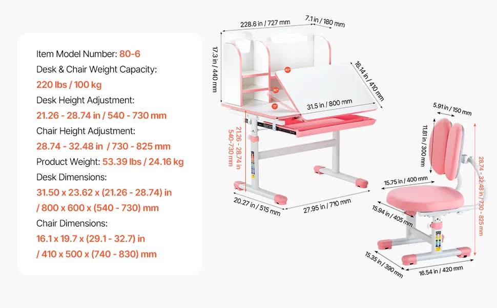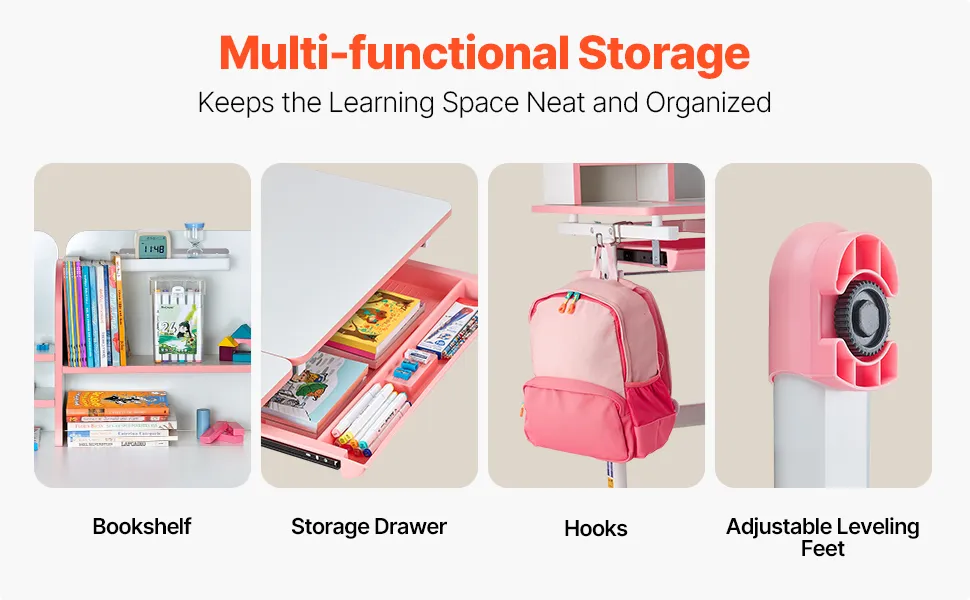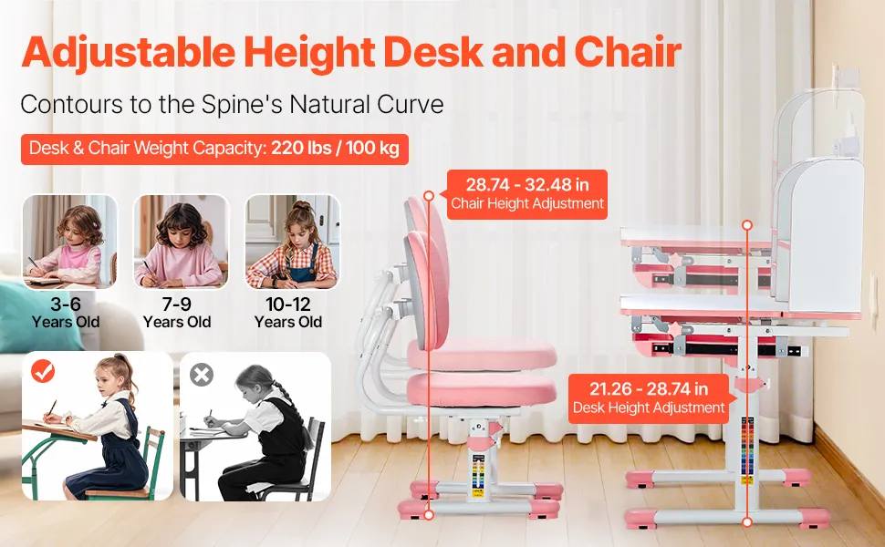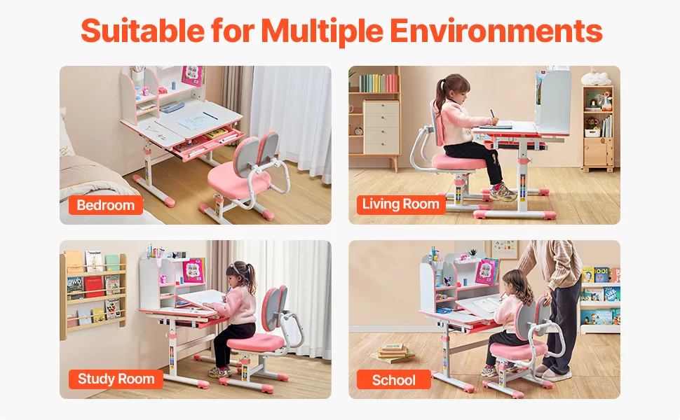 Flexible Height Adjustment: Easily adjust the heights of the desk and chair to accommodate your child's growth. Parents can effortlessly modify both to ensure your child always maintains a comfortable and supportive learning posture.