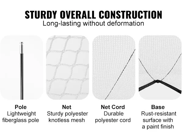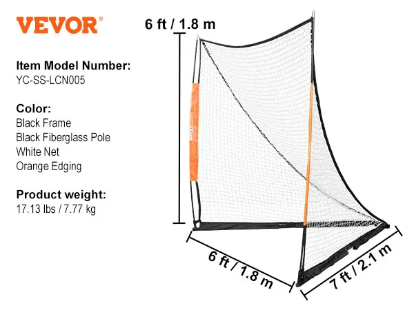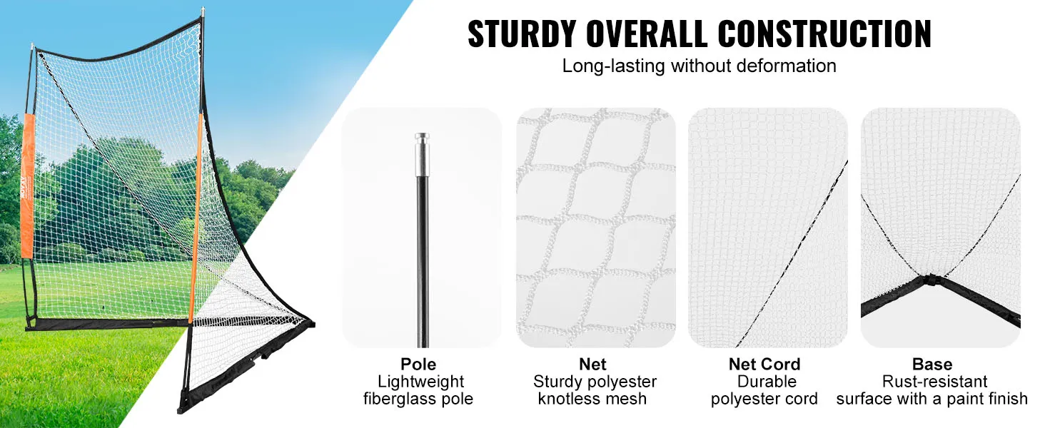 High-quality materials, such as fiberglass poles and a heavy-duty polypropylene net, go into the construction of this VEVOR lacrosse net. Its rust-proof metal base with a painted surface ensures durability against harsh weather. Whether it's regular backyard training or competitive play, this lacrosse net is built to withstand wear and tear, making it a reliable piece of equipment for long-term use.