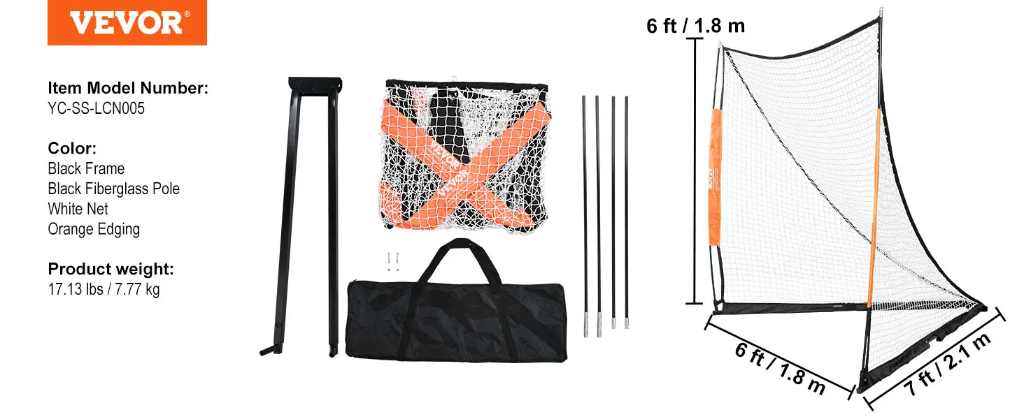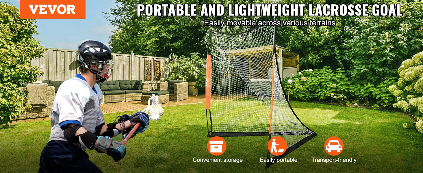 This VEVOR lacrosse goal features a foldable design, making it an excellent portable lacrosse goal. This goal comes with a 600D black Oxford cloth square bag that allows for compact folding and simple storage and transport. Whether you're heading to the park, playground, or practicing in your backyard, this lacrosse goal ensures convenience and portability. Its foldable design makes it ideal for backyard lacrosse training equipment, offering practice opportunities anywhere.