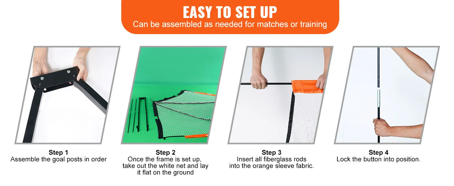 This simple setup lacrosse goal comes with an orange sleeve fabric design, which ensures a secure fit between the net and steel frame. This feature simplifies the assembly process, saving time and effort. Perfect for players looking to maximize practice time, this easy setup lacrosse goal provides a hassle-free solution for training sessions. Its design guarantees stability during intense drills, so you can focus on improving your game without distractions.