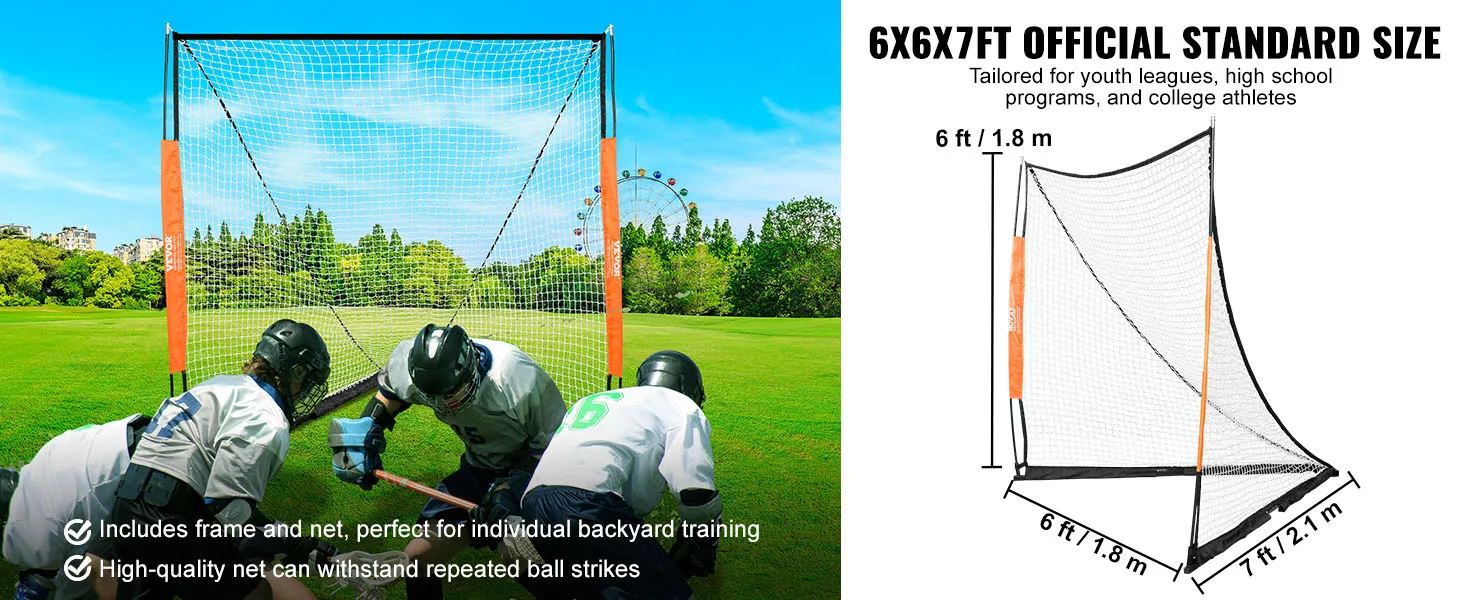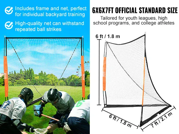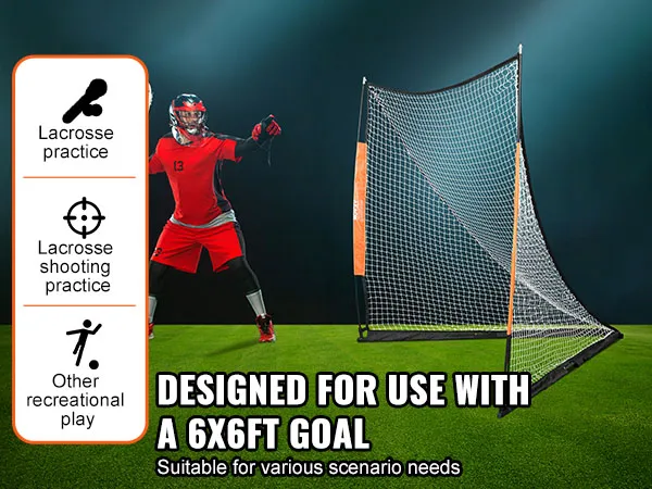 This lacrosse goal is perfect for backyard lacrosse training, catering to players of all skill levels. Its 6x6x7ft dimensions provide ample space for various drills, whether you're working on shooting techniques or defensive strategies. Its versatile design supports diverse training activities, making it an essential addition to any lacrosse player’s gear. From beginners to advanced players, this goal adapts to your needs effortlessly.