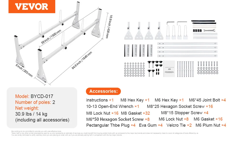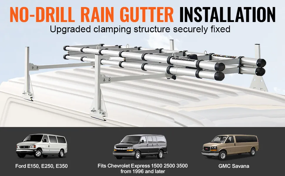 Flexible Adjustment Range: No gear limitations; adjustable within a width range of 56.7-63.0 inches (1440-1600 mm) and height adjustable up to 10.4 inches (265 mm). Designed specifically for medium and small vans, compatible with 1996 and newer Chevrolet Express 1500, 2500, 3500, Ford E150, E250, E350, GMC Savana.