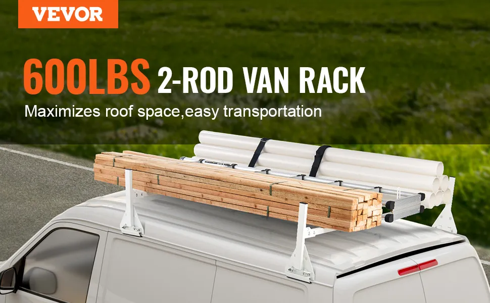 600LBS Multi-Purpose Load Capacity: Constructed from Q235 heavy-duty material with a rust-resistant powder-coated finish. With 2 bars, it supports up to 600 LBS / 272 kg, efficiently utilizing roof space for transporting various large and heavy items such as lumber, ladders, pipes, etc.