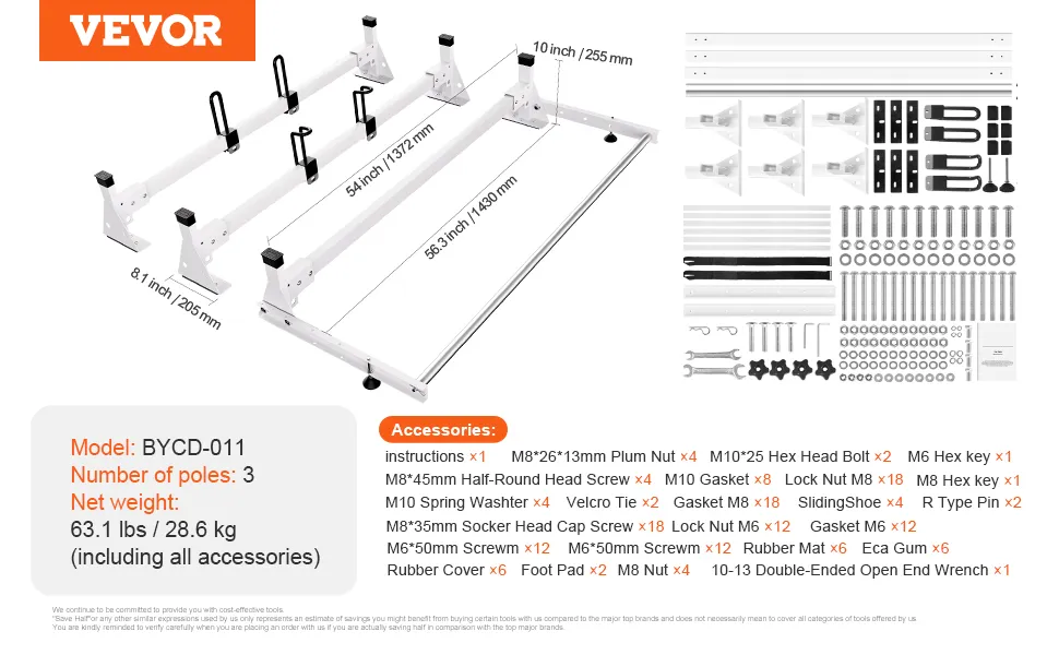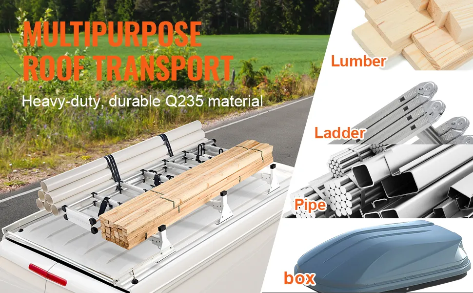 800LBS Multi-Purpose Load Capacity: Made from heavy-duty Q235 material with a rust-resistant powder-coated finish, the rack has a total load capacity of up to 800 LBS / 363 kg with three bars. It makes full use of roof space to handle various large and heavy cargo needs such as lumber, ladders, pipes, and more.