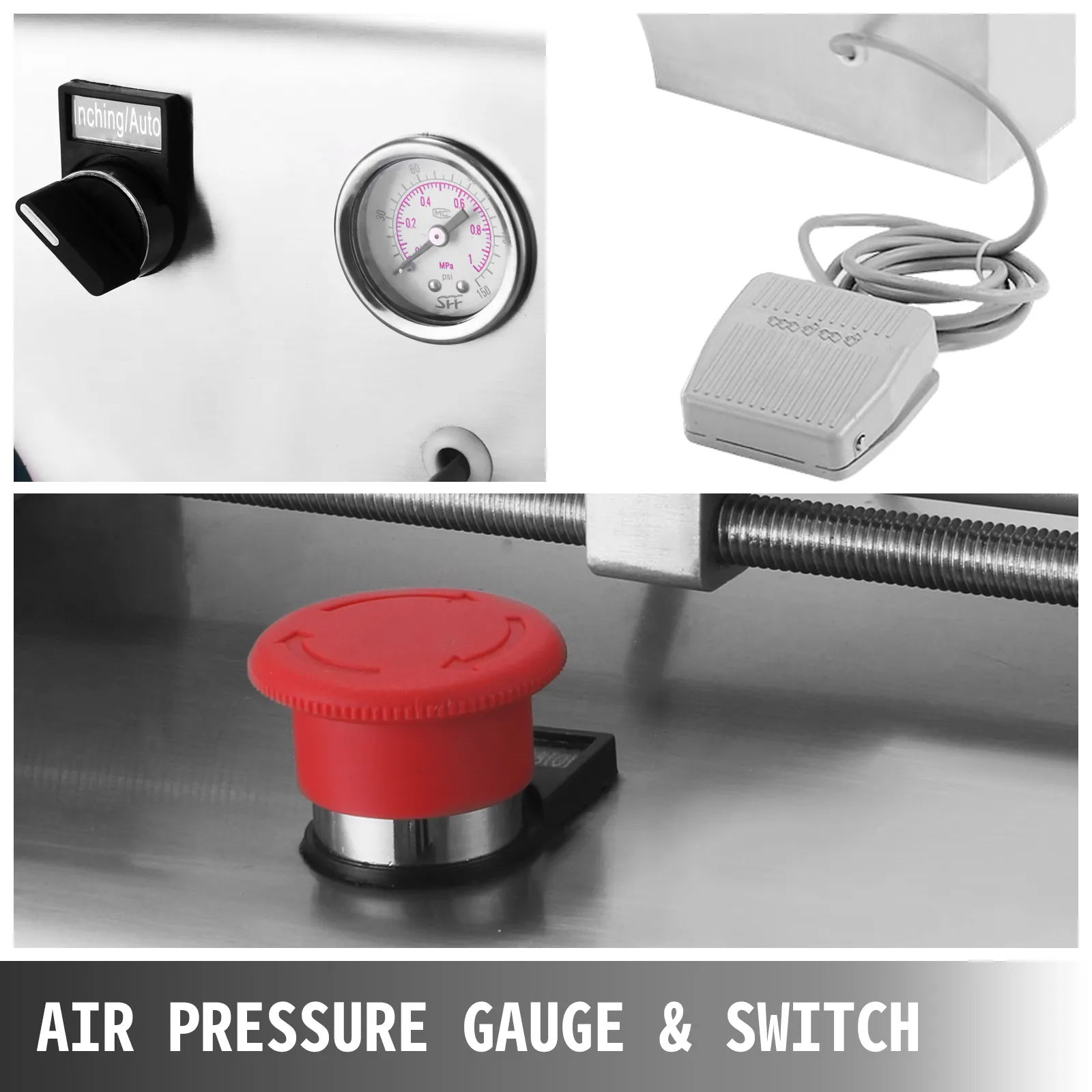 Two control modes can be chosen in our pneumatic filling machine. Manual and auto mode are switchable. Adjust the cylinder housing speed knob, switch to auto mode, and the filling machine will automatically fill. Or switch to manual mode and press the pedal to fill. The device can stop and start at any time because of the emergency stop switch.
