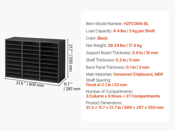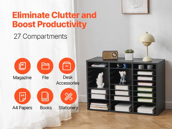27-Compartment Large Capacity: Say goodbye to a cluttered desk with our literature organizer. Featuring 27 roomy compartments arranged in 3 columns and 9 rows, you'll have plenty of space to neatly store books, documents, magazines, and more. Plus, the included labels make it easy to find your files quickly without wasting precious time.
