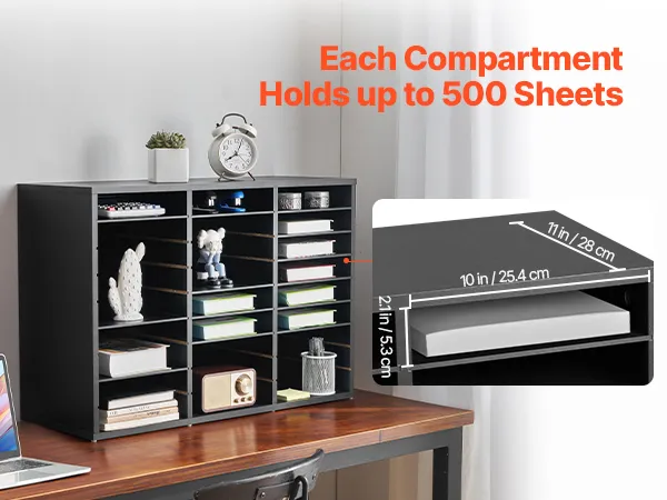 Flexible Storage: Customize your storage with the office mailbox. Each compartment measures 10.0 x 11.0 x 2.1 inches / 254 x 279 x 533 mm and can hold up to 500 sheets of A4 paper. Need more space for larger files or office supplies? Simply remove the shelves to fit your needs.