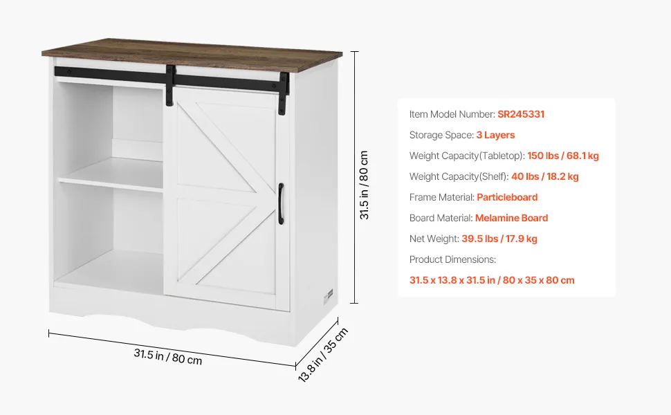 VEVOR Coffee Bar Cabinet, 31.5 x 13.8 x 31.5 in Farmhouse Coffee Bar Cabinet with 3-Tier Storage, Coffee Bar Table with Barn Door, Farmhouse Sideboard Buffet Cabinet for Living Room, Entryway