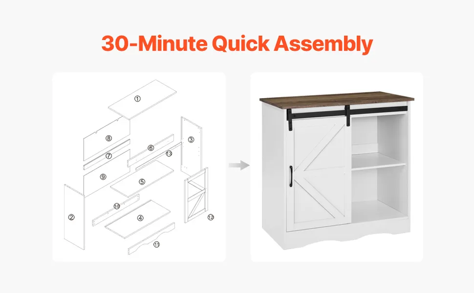 Easy Assembly & Use: This coffee station cabinet comes with detailed instructions for quick assembly. The unique barn doors not only save space but also slide easily without requiring extra clearance, making it simple to access and organize your items in this coffee bar cabinet station.
