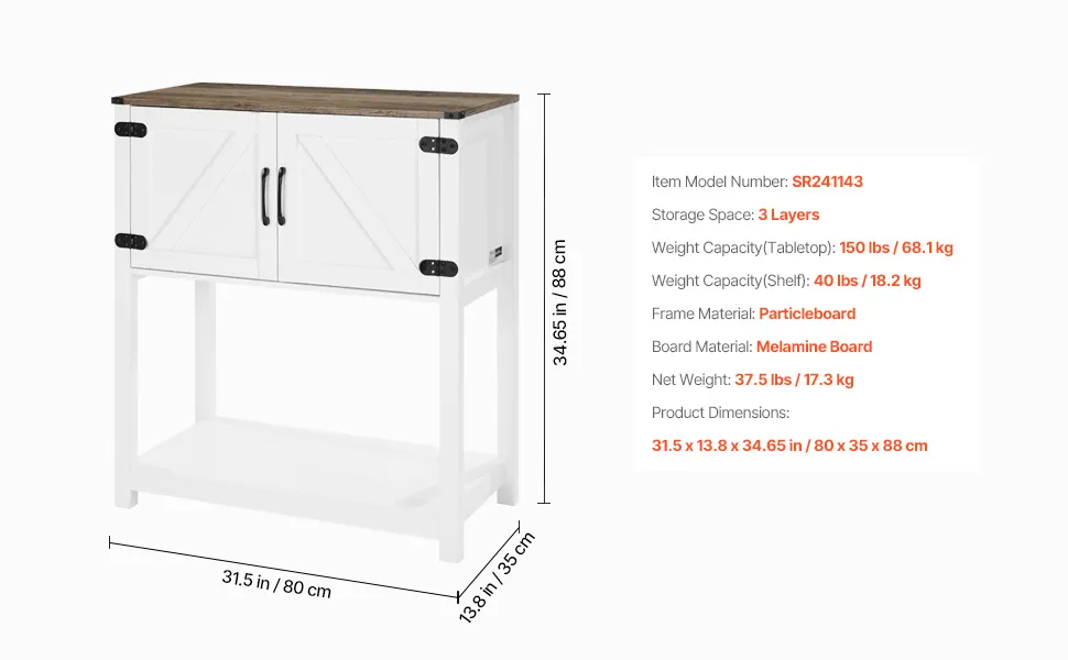VEVOR Coffee Bar Cabinet, 31.5 x 13.8 x 34.6 in Farmhouse Coffee Bar Cabinet with 3-Tier Storage, Coffee Bar Table with Magnet Doors, Farmhouse Sideboard Buffet Cabinet for Living Room, Entryway