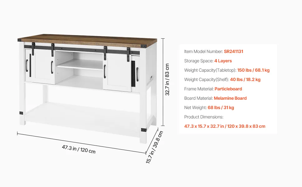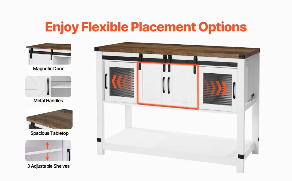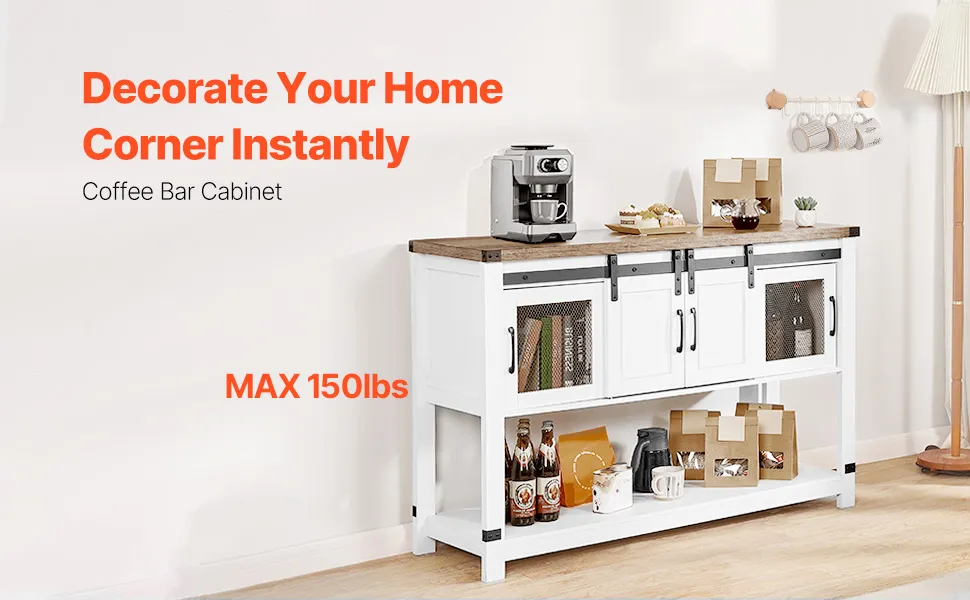 VEVOR Coffee Bar Cabinet, 47.3 x 15.7 x 32.7 in Farmhouse Coffee Bar Cabinet with 4-Tier Storage, Coffee Bar Table with Barn Doors, Farmhouse Sideboard Buffet Cabinet for Living Room, Entryway