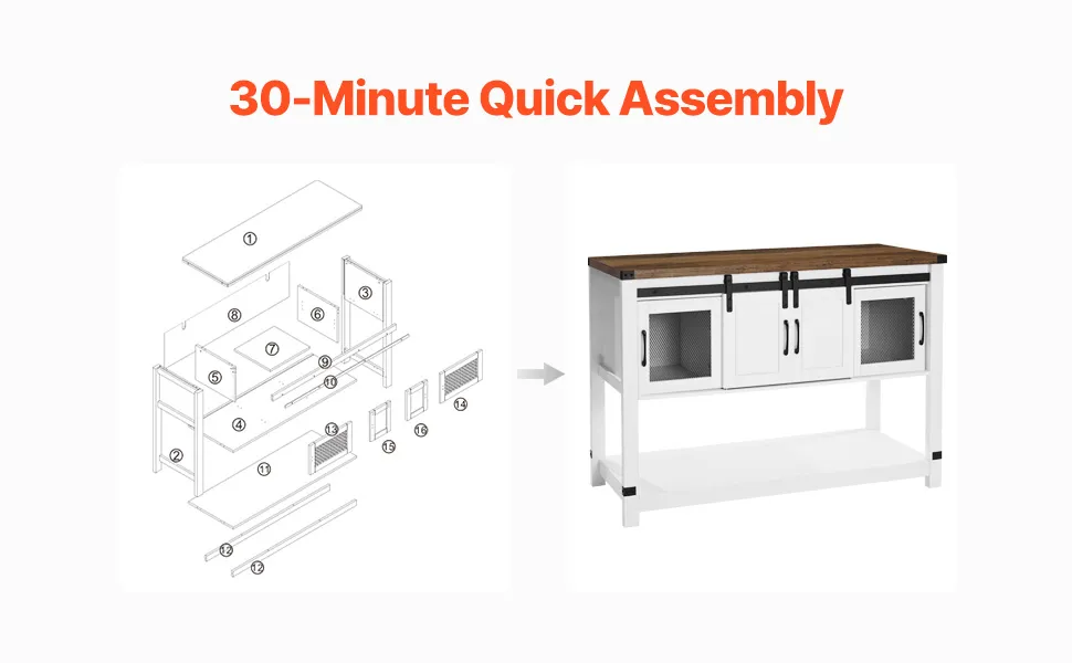Clear instructions ensure easy assembly, taking only about 30 minutes to set up this sideboard buffet cabinet.