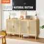 VEVOR Rattan Cabinet, Set of 2, Rattan Storage Cabinet with 4 Magnetic Doors and Adjustable Shelves, Sideboard Buffet Cabinet for Hallway, Entryway, Living Room, or Kitchen, Natural