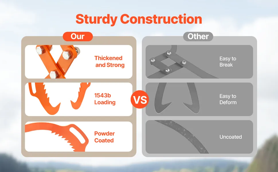 Durable Construction: Crafted from high-hardness forged steel with a rust-resistant powder coating, these log skidding tongs are built to withstand harsh environments, ensuring longevity and reducing maintenance or replacement needs.