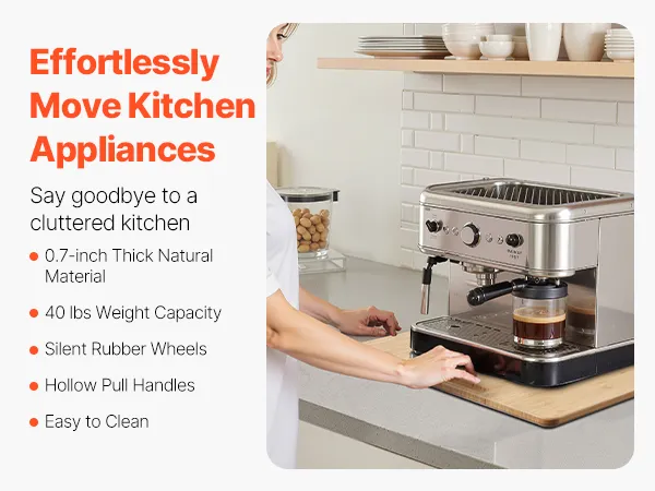 Effortless Sliding: The hollow handle design lets you move appliances with one hand, saving time and reducing the hassle of lifting. Our appliance rolling tray maximizes kitchen space while avoiding steam damaging cabinets.