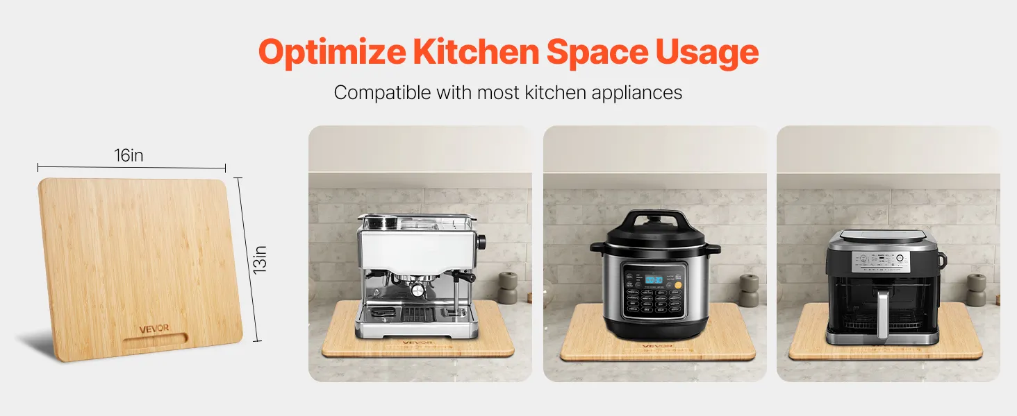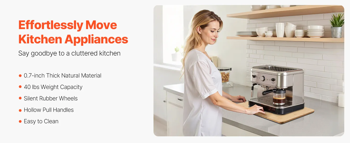 Natural Material: The sliding tray is made from natural material, free from odors, with a 0.7-inch thick design that's durable and resistant to warping or cracking. Built for frequent kitchen appliance adjustments.