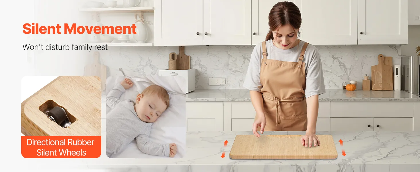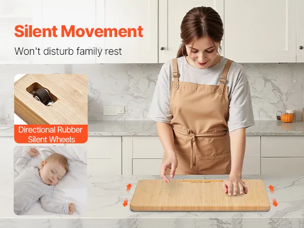 Soft rubber wheels of the sliding tray secure countertops, from marble to wood. Move appliances silently—no noise to disturb family members, keeping your kitchen peaceful and quiet.