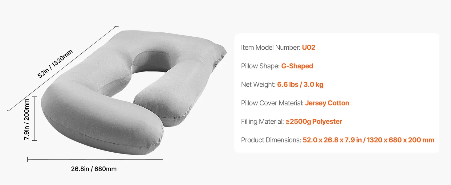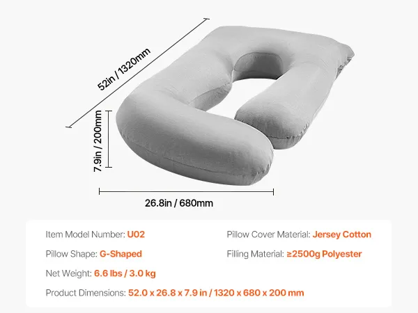 Experience the ultimate in comfort and support with our G-shaped pregnancy pillow. Featuring full-body ergonomic support, skin-friendly jersey cotton cover, and premium polyester fiber filling, it offers plush, cozy support for lasting and high-quality relaxation.