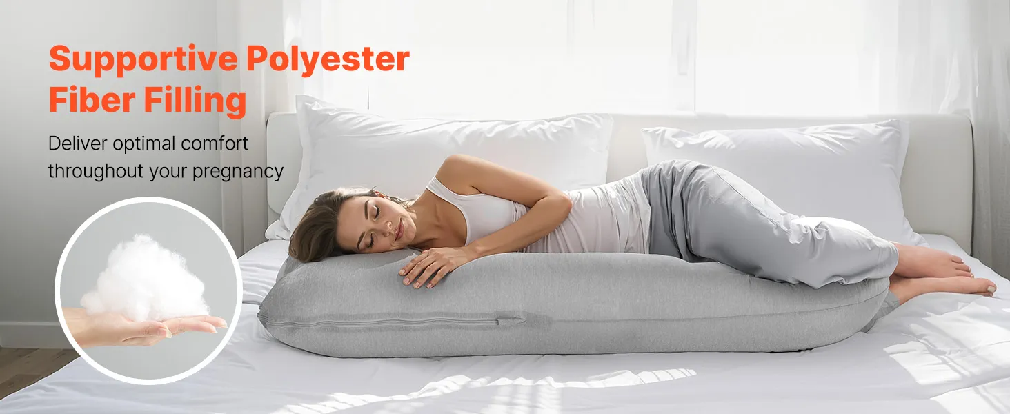 Our maternity pillow is filled with high-quality polyester fiber, providing the perfect balance of support and comfort for your body. Designed to alleviate pressure and enhance relaxation, it helps you unwind and enjoy a more restful experience.