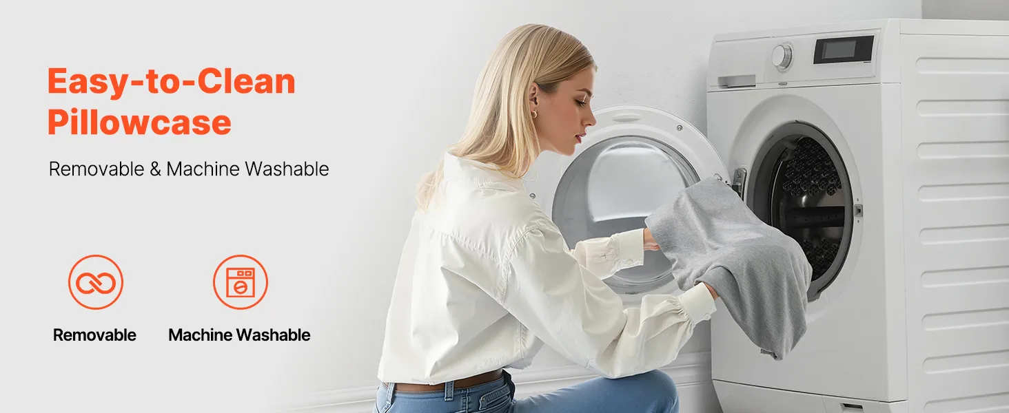 The cover of our full body maternity pillow is removable and machine-washable, making cleaning effortless. Simply unzip, toss it in the wash, and enjoy a fresh, clean pillow every time, ensuring long-lasting comfort and convenience.