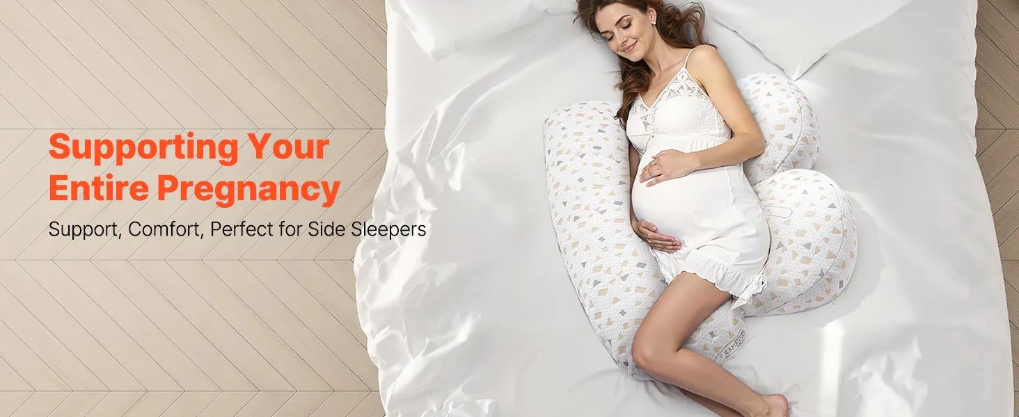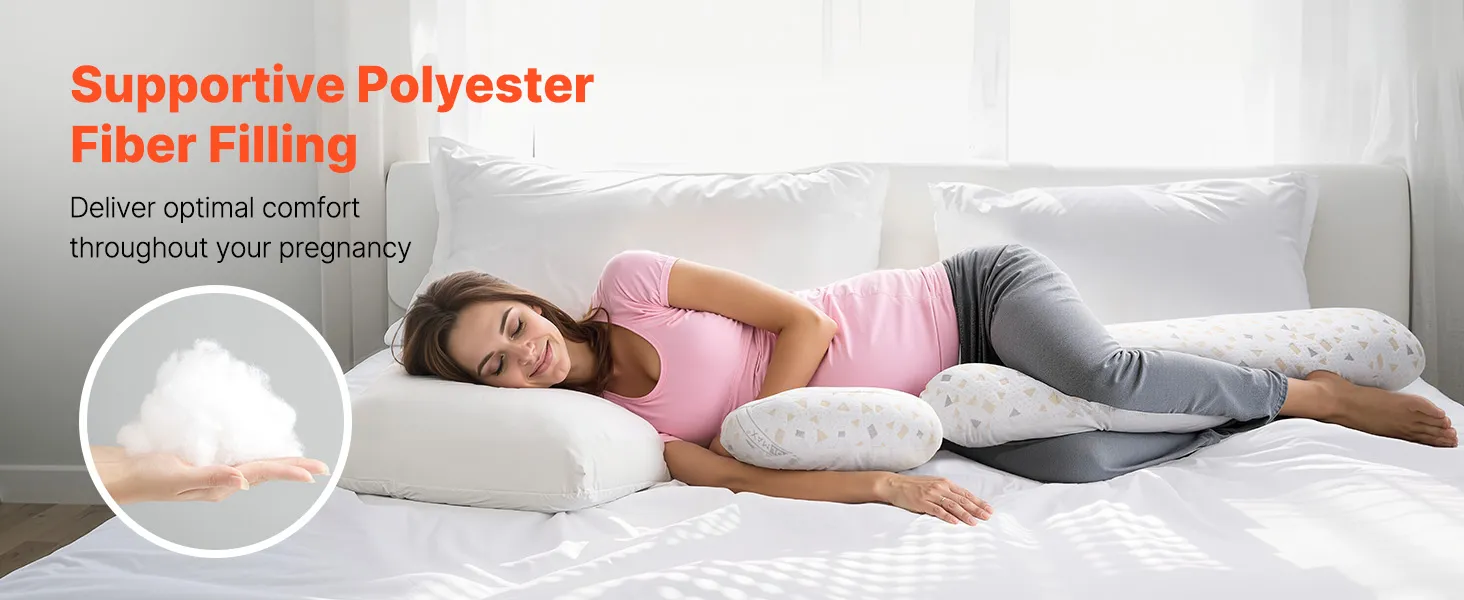 Experience the ultimate in comfort and support with our pregnancy pillows. Featuring ergonomic support, skin-friendly and breathable cover, and premium polyester fiber filling, it offers plush, cozy support for relaxation. Feel relaxed every day as you prepare to welcome your little one!