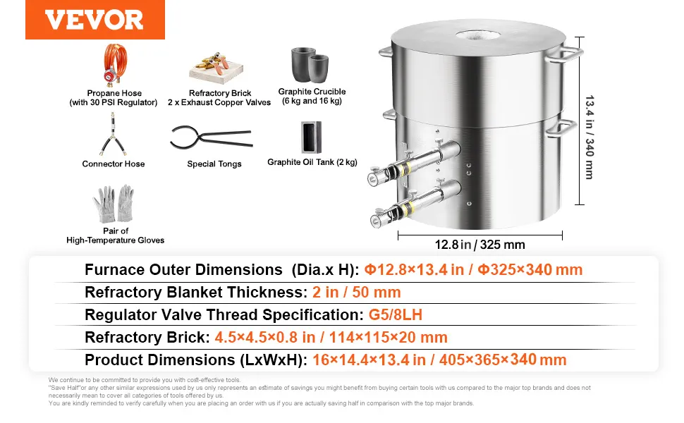 Easy Installation, Convenient Use: The standard threaded propane hose connection makes installation incredibly simple. No professional skills are required—set it up quickly and start your melting journey right away. Whether you're a professional or a beginner, this propane metal melting furnace is easy to use, allowing you to enjoy the art of melting effortlessly.