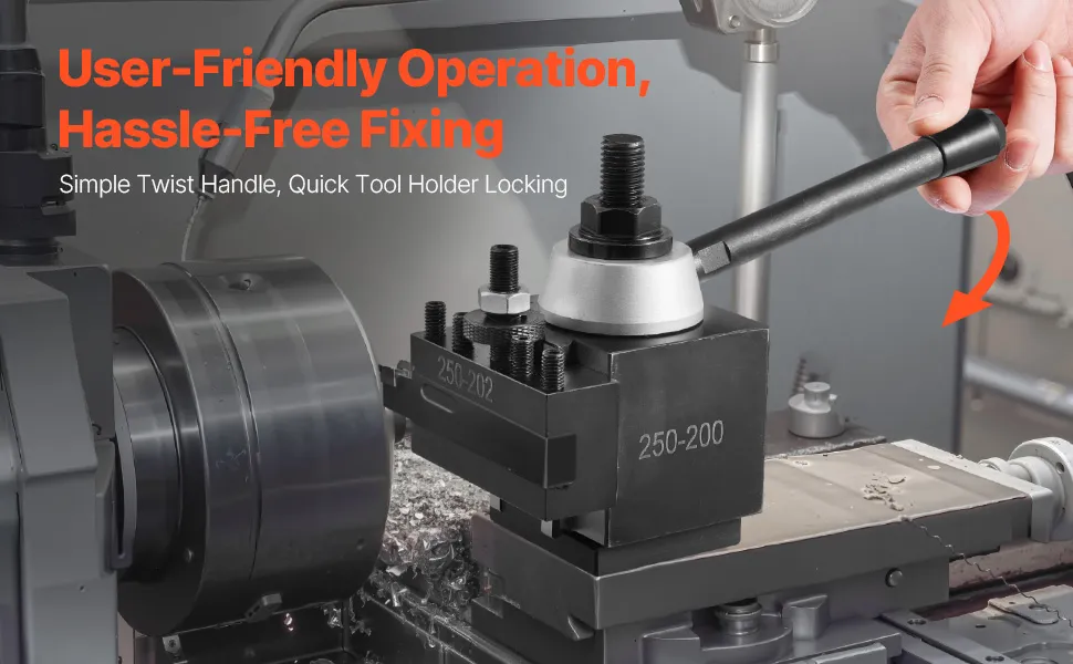 Quick Tool Changes: With a simple handle turn, you can secure and release this lathe quick change tool holder in seconds, drastically streamlining the replacement process and improving workflow efficiency.