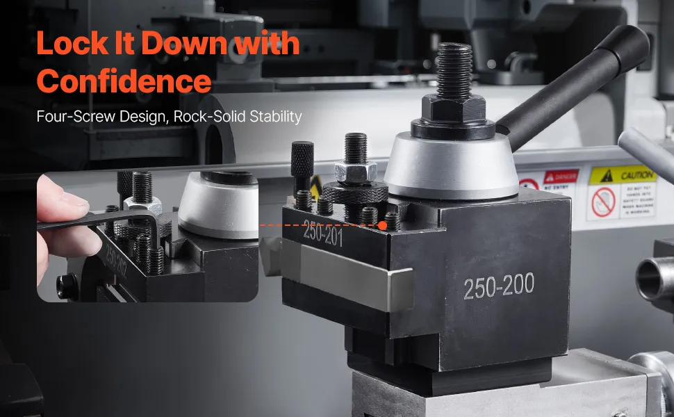 Featuring a four-point screw system, this lathe quick change tool post set minimizes vibration-induced errors and boosts machining precision and efficiency, delivering unwavering support for your operations.