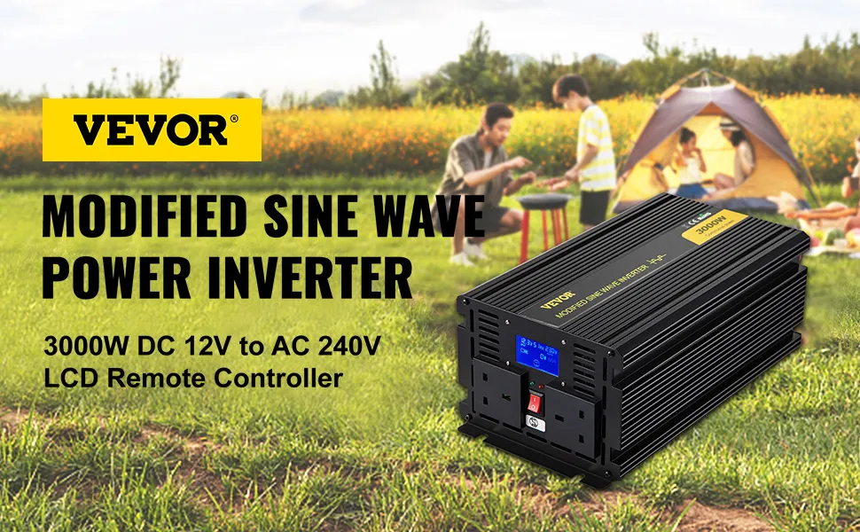 VEVOR Power Inverter 3000W Modified Sine Wave Inverter DC 12V to AC 240V Car Converter with LCD Display Remote Controller LED Indicators AC Outlets Power Inverter for Car RV Truck Boat Travel Camping VEVOR Power Inverter 3000W Modified Sine Wave Inverter DC 12V to AC 240V Car Converter with LCD Display Remote Controller LED Indicators AC Outlets Power Inverter for Car RV Truck Boat Travel Camping