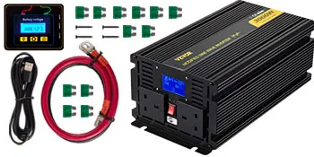 • Remote Controller & Cables: The truck power inverter is equipped with high-quality plastic LCD remote control, which is friction resistant, not easy to damage, and more convenient for users to control the inverter indoor and outdoor.